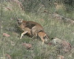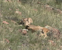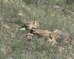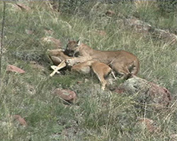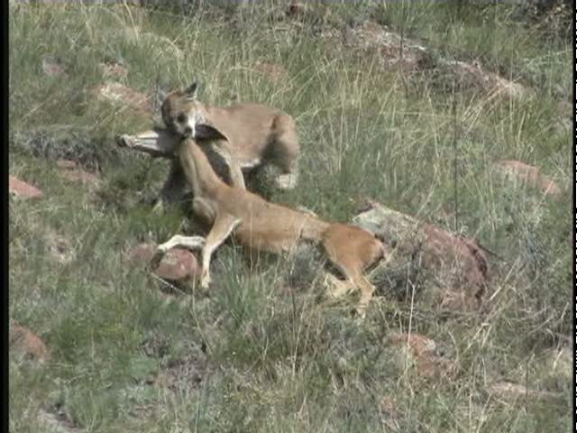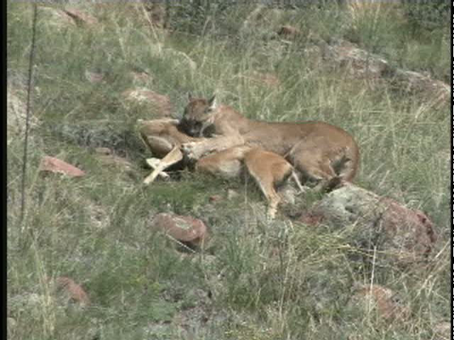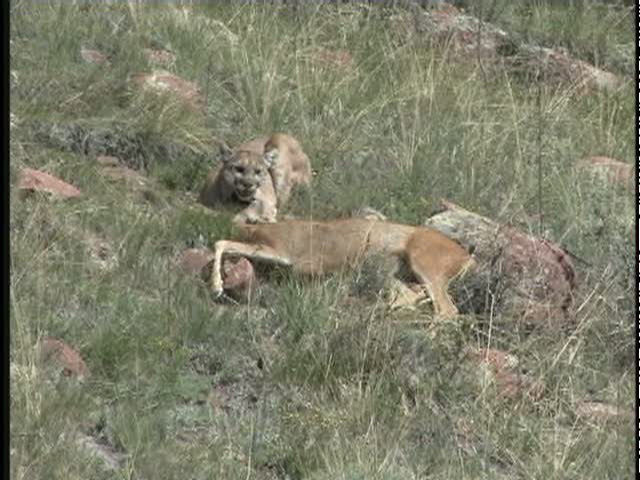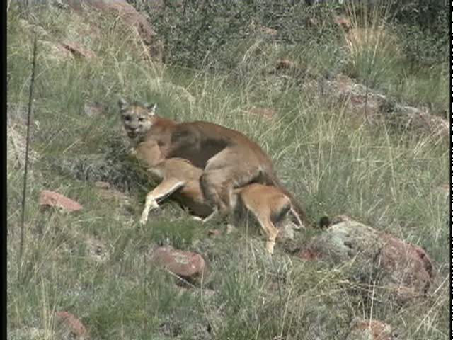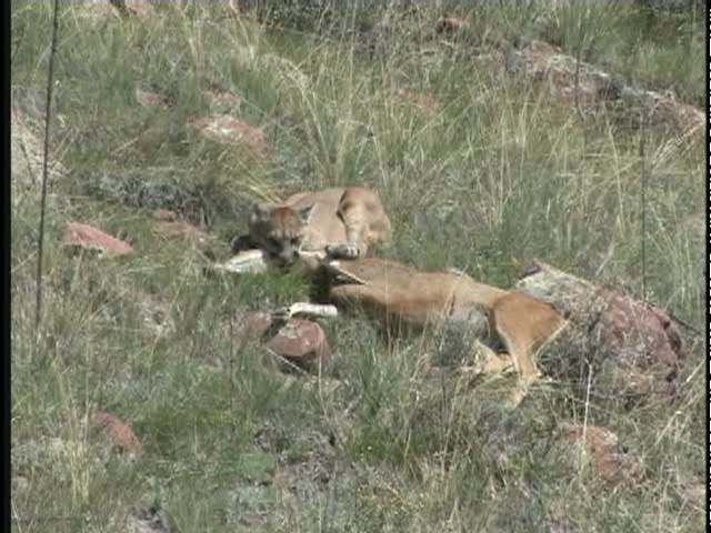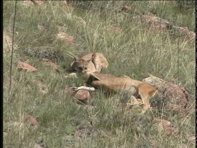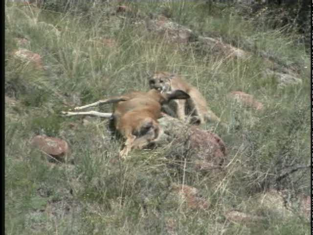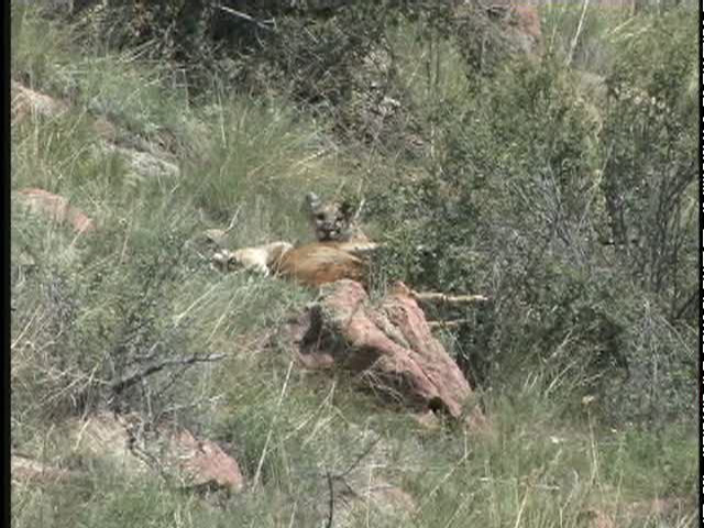 A series of frames from a videotape I made in the summer of 2008 of a mountain lion just after she took down a deer. She was watching me the entire time I was taping her from my deck!